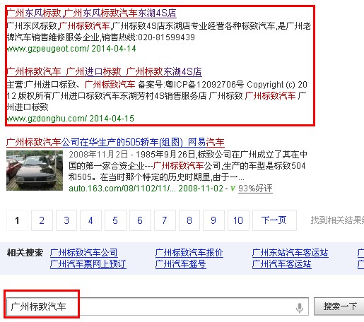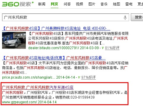 贈送關(guān)鍵詞“廣州標(biāo)致4S店”排名百度第四位