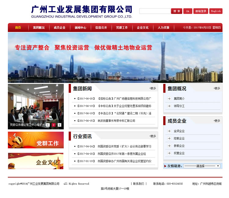 簡介:工業(yè)發(fā)展集團成立于1995年,是廣州市國資委直屬的國有獨資企業(yè)。集團公司作為廣州市國有企業(yè)資產(chǎn)重組、結(jié)構(gòu)調(diào)整、盤活資源、理順關(guān)系的重要平臺,為推進市屬國有經(jīng)濟布局、結(jié)構(gòu)調(diào)整和深化國有企業(yè)改革服務(wù)。