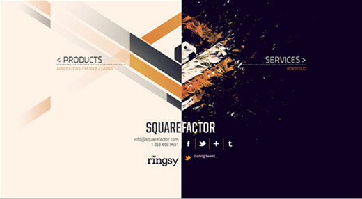 再看下一個(gè)頁(yè)面設(shè)計(jì),采用了兩種顏色拼湊的背景圖片,給人以強(qiáng)大的視覺(jué)沖擊,其大部分是空白處,用戶(hù)很快就能找到重點(diǎn),頁(yè)面簡(jiǎn)單大方。